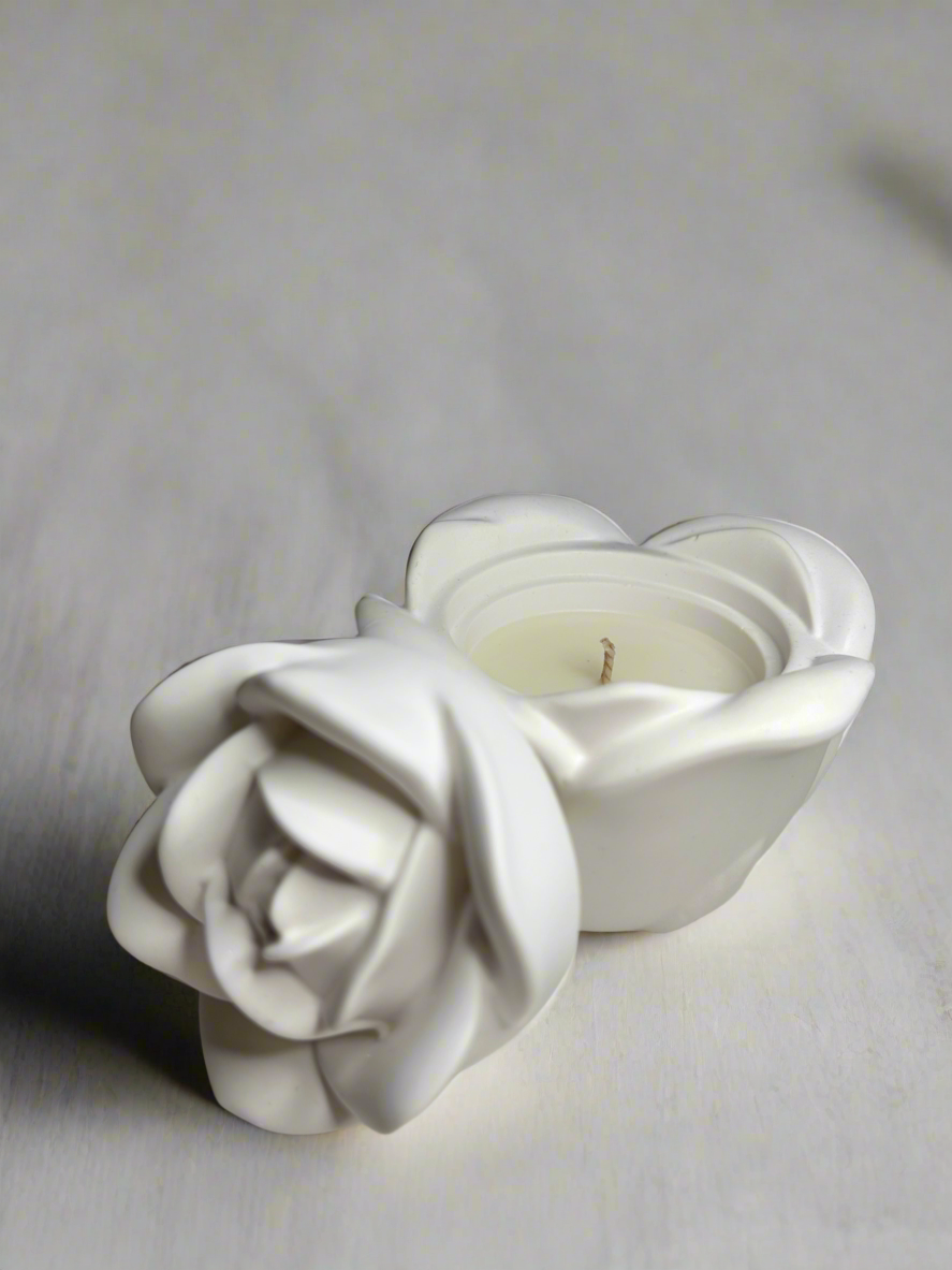 Χειροποίητο κερί από πορσελάνη λευκό τριαντάφυλλο σε άρωμα της επιλογής σας .