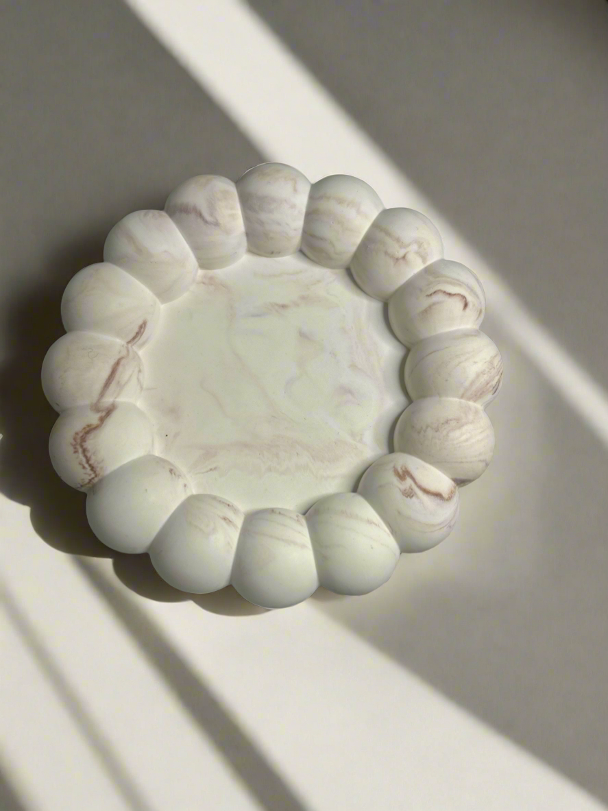 Χειροποίητος Στρογγυλός Δίσκος Πορσελάνης Bubble με Καφέ Νερά