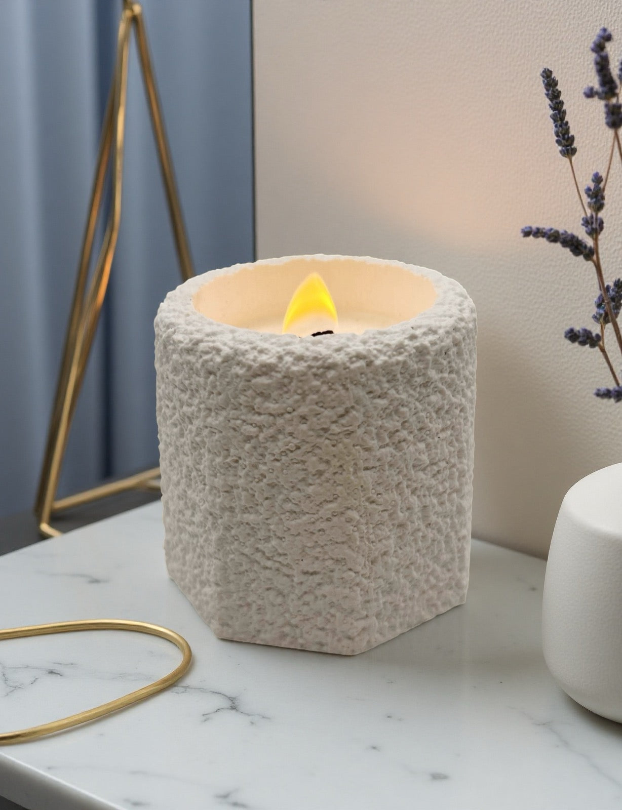 Αρωματικό κερί σόγιας σε λευκό χειροποίητο πορσελάνινο βάζο σαγρέ.